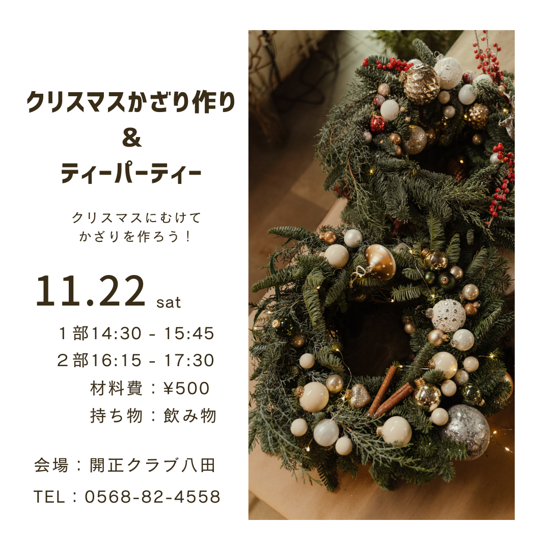 11月22日(土)「クリスマスかざり作り&ティーパーティー」を開催します!